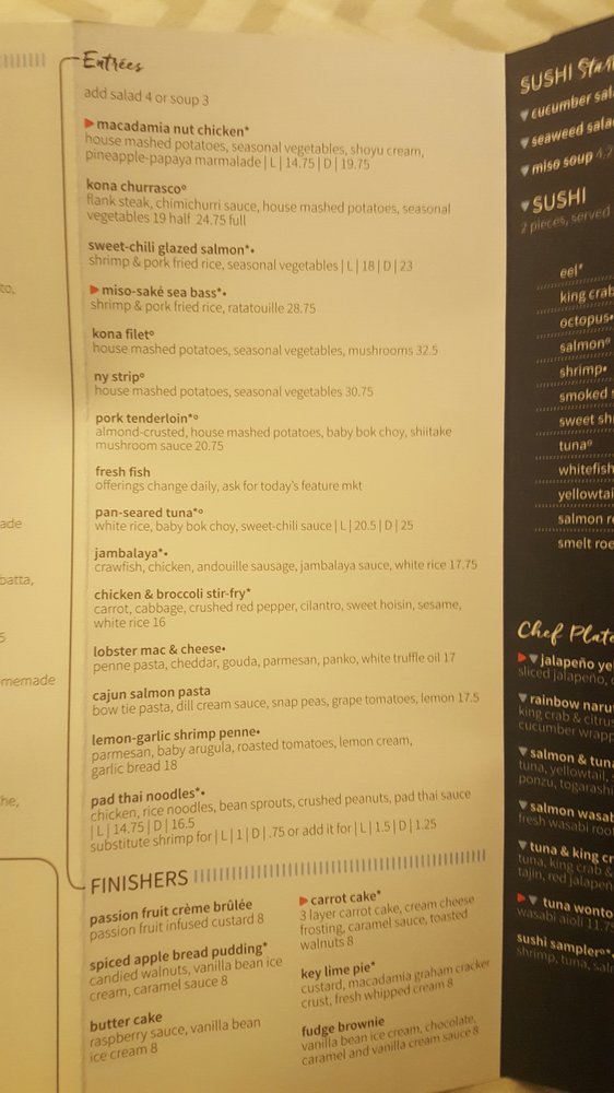 Welcome to Kona Grill, a New American and Sushi Bar in Baltimore, MD. Offering a range of amenities like delivery, takeout, vegan options, and more, Kona Grill ensures a enjoyable dining experience for all. Customers rave about the diverse menu, with dishes like Sweet Chili Glazed Salmon and Kona Stir-fry standing out. The atmosphere is casual yet trendy, perfect for a night out with friends or family. Service is top-notch, with knowledgeable staff and quick checkout options. While some customers have noted small issues with service or ambiance, the overall consensus is positive. So if you're looking for a delicious meal in a welcoming setting, Kona Grill is the place to be.